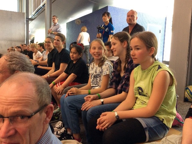 Wir mussten nicht lange warten, bis die Juniorwettkämpfe begannen. In dieser Sparte haben die Deutschen bis auf ein einziges Mal immer den ersten Platz gewonnen. Wir waren beeindruckt vom Können der Turnerinnen und Turner. Einige der gezeigten Elemente gefielen uns so ausserordentlich, dass wir uns schon jetzt darauf freuen, sie bei uns im Training auszuprobieren.