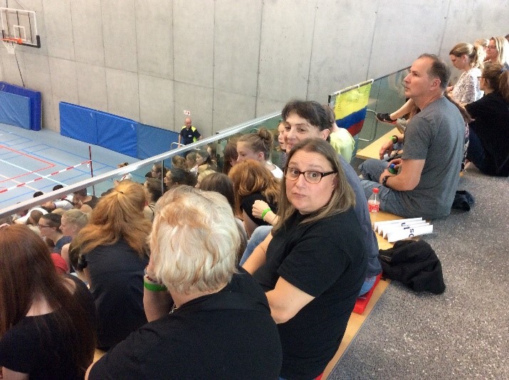Obwohl es im „Sauna-Bus“ sehr heiss war, herrschte eine fröhliche Stimmung, denn alle freuten sich auf die Rhönrad-Weltmeisterschaft. Als wir nach einer gefühlten Ewigkeit in Magglingen ankamen, erhielten wir ein schickes grünes Eintrittsarmband.